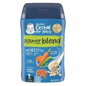 Gerber 2nd Foods Power Blend Cereal For Baby, Probiotic, Oatmeal, Lentil, Carrots & Peas, With Whole Grains & Plant Protein, 8 OZ Canister (Pack of 3)