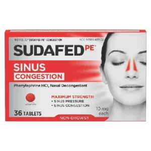 Sudafed PE Sinus Congestion Relief Tablets, Maximum Strength, Non-Drowsy, 10 mg Phenylephrine HCI Decongestant, Sinus and Nasal Congestion Relief; 36 ct; Pack of 1