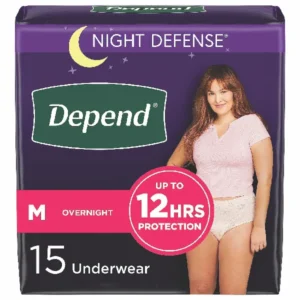Depend Night Defense Adult Incontinence Underwear for Women, Disposable, Overnight, Medium, Blush, 15 Count, Packaging May Vary