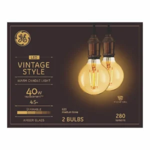 GE Lighting Vintage Style LED Globe Light Bulb, 4.5 Watt (40 Watt Equivalent) Warm Candle Light, Amber Glass, Medium Base, Dimmable (2 Pack)