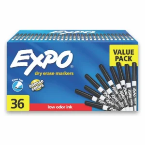 EXPO Low Odor Dry Erase Markers, Fine Tip, Black, 36 Count
