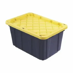 HDX 27 gal. Strong Box Plastic Storage Tote in Black and Yellow
