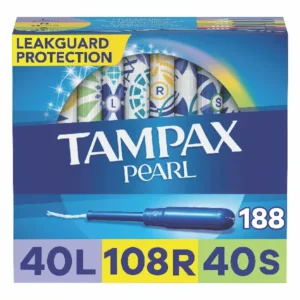 Tampax Pearl Plastic Tampons, Light/Regular/Super Absorbency Multipack, 188 Count, Unscented (47 Count, Pack of 4 – 188 Count Total) – Packaging May Vary