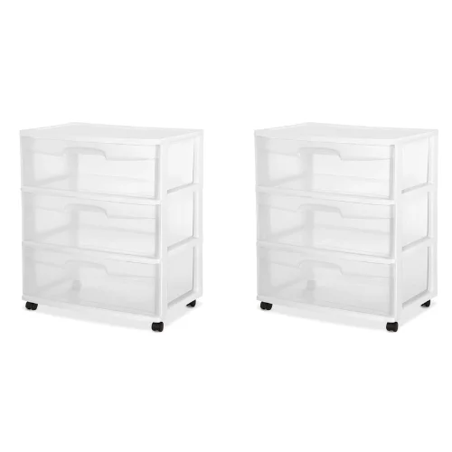 Includes 2 3-Drawer Carts. Made in the USA. See-through drawers allow for easy identification of contents, Casters provide rolling storage options.