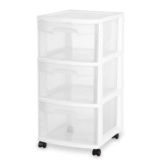 Organize your office, bedroom, or child’s room with the Sterilite 3-drawer Rolling Storage Cart, easy-pull handles provide a smooth open and close experience. Rolling storage cart features removable caster wheels for a portable storage solution