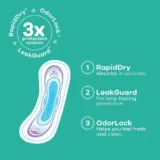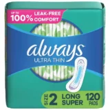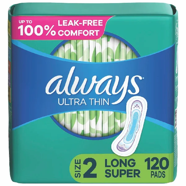 Always Ultra Thin Pads give people with periods up to 100% Leak-Free Comfort. Ultra Thin pad provides flexible daytime protection without the bulky feel. Absorbs 90% faster than the leading store brand with Always RapidDry* Technology. Locks in leaks with LeakGAURD’s* incredibly long-lasting protection. Helps prevent unwanted odors with OdorLOCK* to keep you feeling super fresh all day. FSA eligible: Check with your FSA or HSA plan on the coverage of feminine products. Pack made from 50% recycled plastic and at a site that purchases 100% renewable electricity