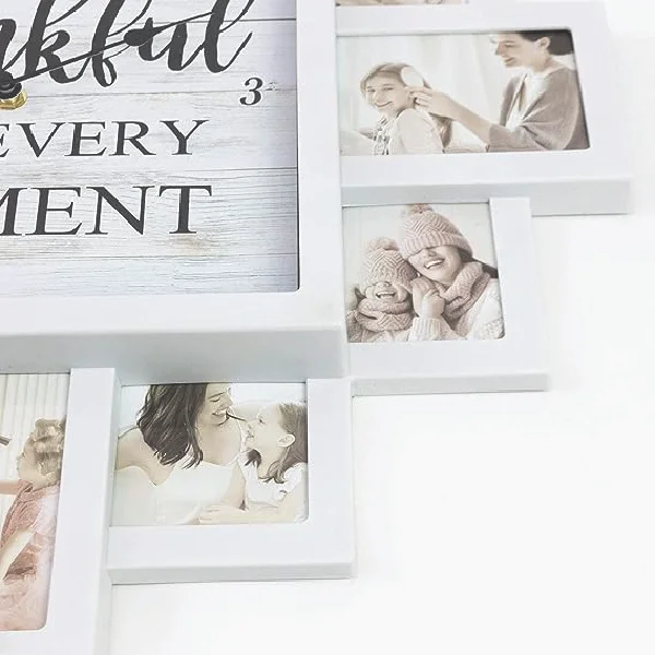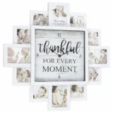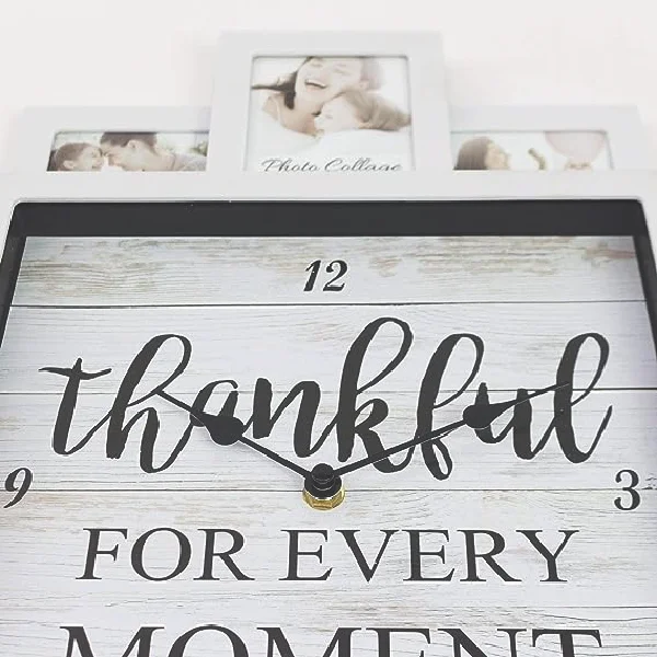 American Art Decor White Farmhouse Shabby-Chic Thankful Wall Clock with Picture Frame Photo Collage