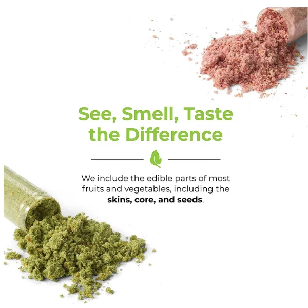 Whole Food Fruits Supplement: Balance of Nature Fruits is made with aloe vera, apple, banana, blueberry, cherry, cranberry, and more.  Balance of Nature Veggies is made with broccoli, cabbage, carrot, cauliflower, cayenne pepper, and more. Fruits and veggies are gluten-free, non-GMO, keto-friendly, and vegan; they are also free from added sugars, fillers, and synthetics