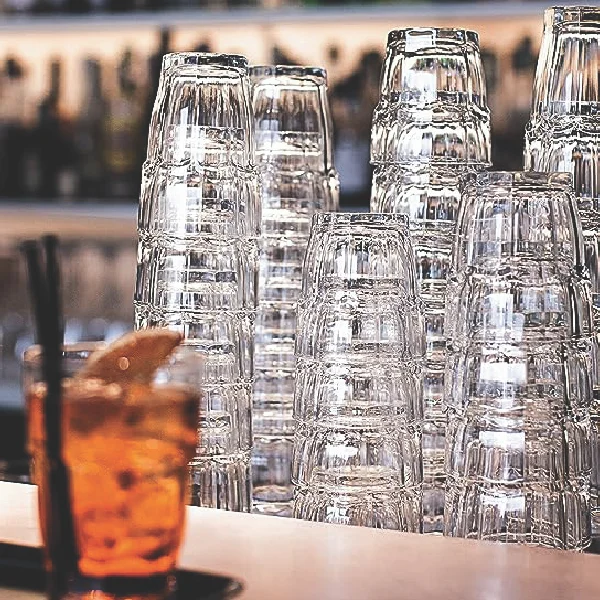 Rock Bar is a collection of paneled glassware that is tempered glass – characterized by its exceptional strength and unique stackability perfect for the kitchen to the bar.