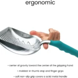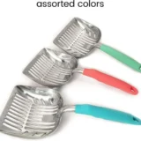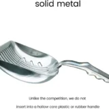 The DuraScoop Won’t Bend or Flick – The DuraScoop is a single piece of metal, end-to-end, including the handle which is covered with a soft, non-slip, phthalate-free cover that’s easily replaced. Other scoop handles are stubs embedded in rubber or plastic that can bend or break during use. That’s cheaper for them, but not great for you.