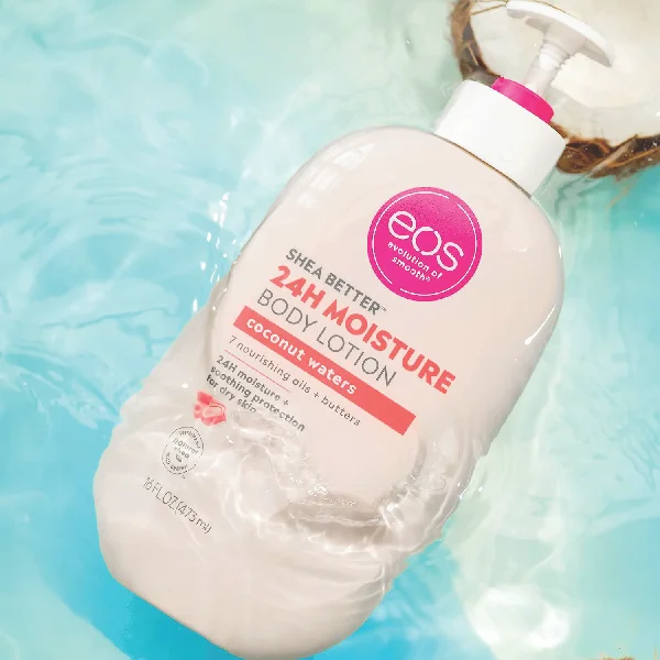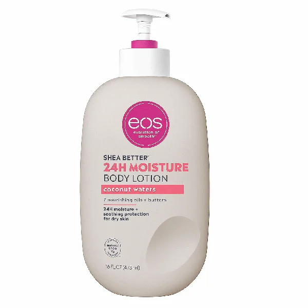 SHEA BETTER BODY LOTION: Our warm and sun-kissed Coconut Waters scent contains fragrance notes of creamy coconut, lush hibiscus and solar musk. eos 24-hour hydration body lotion is made with natural ingredients to leave your skin smooth from head-to-toe. 24-HOUR MOISTURE FOR YOUR BODY: Soothe and protect your skin with our lightweight and non-greasy lotion. No sticky residue or heaviness, just all-day hydration and smooth skin. SMOOTH ON: Apply this fast-absorbing and deliciously scented body lotion to just-cleaned skin, paying special attention to dry, rough areas. Relax – we’ll do the rest. SUSTAINABLE SKIN CARE: Protect and moisturize your skin with 7 nourishing oils + butters, including natural shea butter and shea oil. Our collection of incredible fragrances will delight in application and last all day on skin. ALL-NATURAL SHEA BUTTER: eos products have wild grown, sustainably-sourced 100% natural shea butter to make skin feel moisturized, protected and soft. We are paraben, phthalate and gluten free. Dermatologist tested. Vegan. Hypoallergenic. PETA certified. No products tested on animals.