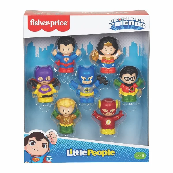 From Gotham City to Metropolis and the tough battlefields of your living room, this group of Super-Heroes can battle bad guys wherever your tiny crimefighter takes them. The Little People DC Super Friends figure pack features 7 character figures sized just right for toddler hands to grasp and move as they create their own exciting adventures