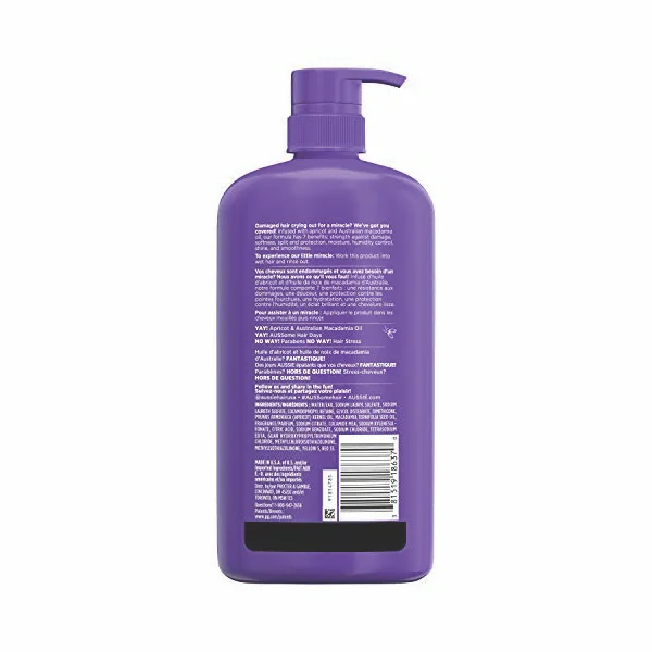 PERFECT FOR damaged hair. USE IT TO strengthen, protect, smooth and hydrate hair. INFUSED WITH apricot and Australian macadamia oil. SMELLS LIKE luscious citrus. FREE OF parabens & stress.