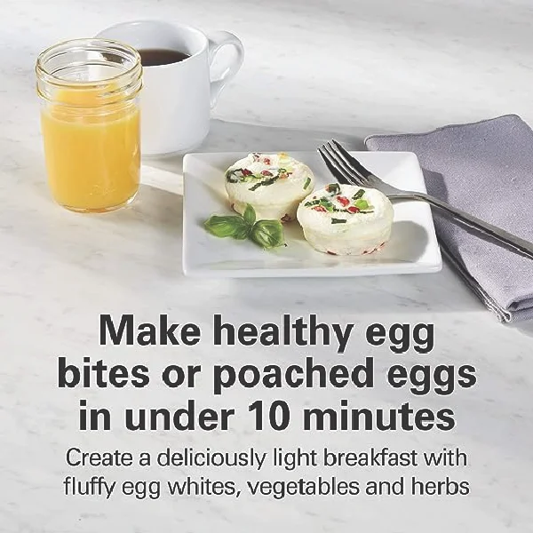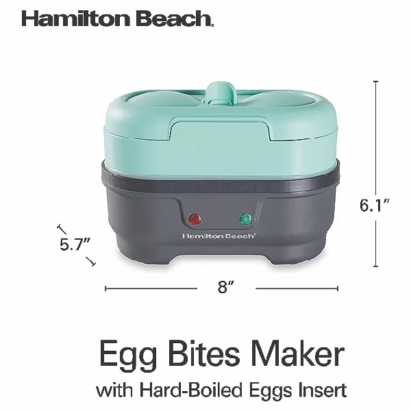 Make perfect eggs in the comfort of your own home with the Hamilton Beach Egg Bites Maker with Hard-Boiled Eggs Insert. It makes 2 egg bites or 2 poached eggs in under 10 minutes and up to 6 hard-boiled eggs.
