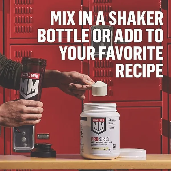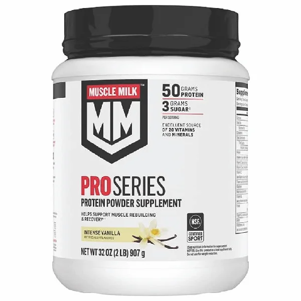 Muscle Milk Intense Vanilla Pro Series 50 Lean Muscle Mega Protein Powder. Building athletes from the inside Out. Genuine. Cytosport. Taste satisfaction guaranteed. Naturally and artificially flavored. 50g lean protein per 2 scoops