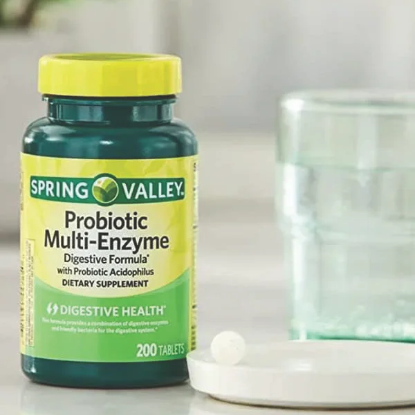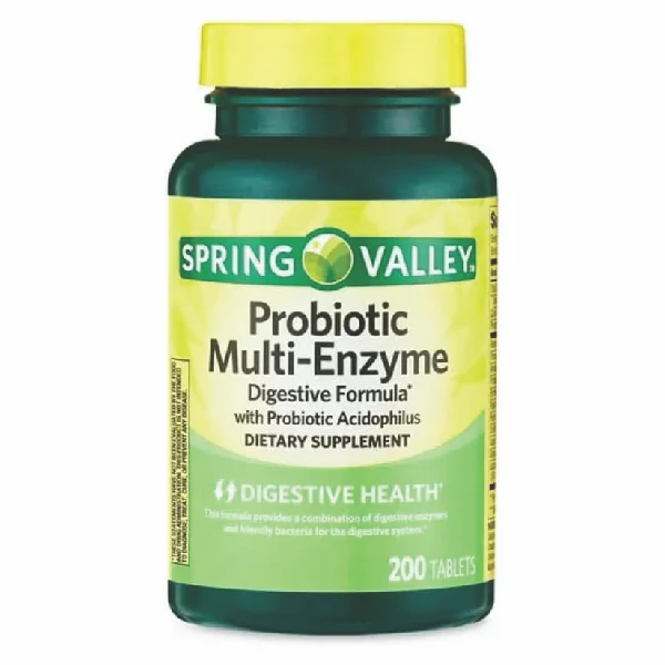 Nick & Hannah Spring Valley Probiotic Multi-Enzyme Digestive Formula Tablets, 200 Count + 1 Spatula (Style Varies)