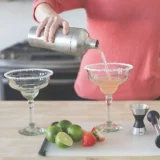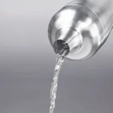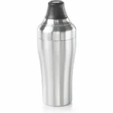 18 oz Shaker includes a Jigger cap and built-in strainer. Double wall stainless steel construction for insulation. Soft, non-slip grip. 1 oz, 3/4 oz and 1/2 oz Jigger measurement markings. Elegant brushed stainless steel construction.