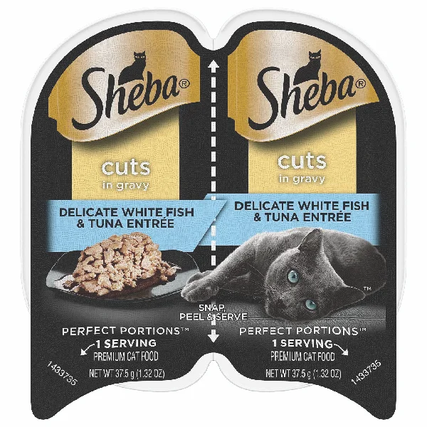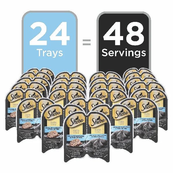 SHEBA PERFECT PORTIONS Cuts in Gravy Wet Cat Food Trays (24 Count, 48 Servings), Whitefish and Tuna Entrée, Easy Peel Twin-Pack Trays, 2.6 Ounce (Pack of 24)