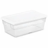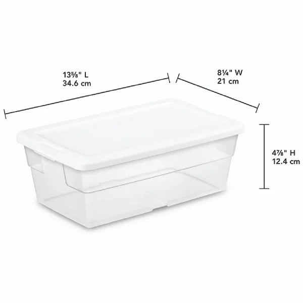 Pack of 24 Sterilite 6 Qt Plastic Storage Container Bin w/ Snap Close Lid are the perfect size for crafting and classroom supplies, small tools, and holiday decor. Durable and safe storage solution made of sturdily constructed materials, ideal for garages, basements, attics, sheds, and more. Indexed lids with built-in grip allow for secure stacking of these plastic storage boxes on top of each other. Ideal for storing lightweight items in your closet, garage, classroom, pantry, bedroom, and more. See-through clear base allows for easy viewing of contents.