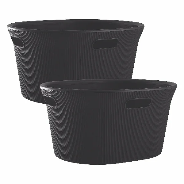 Superio Ribbed Collection – Decorative Plastic Laundry Basket with Cut-Out Handles, Brown (2 Pack) Hamper Organzier for Bedroom Bathroom College Dorm Room 35 Liter