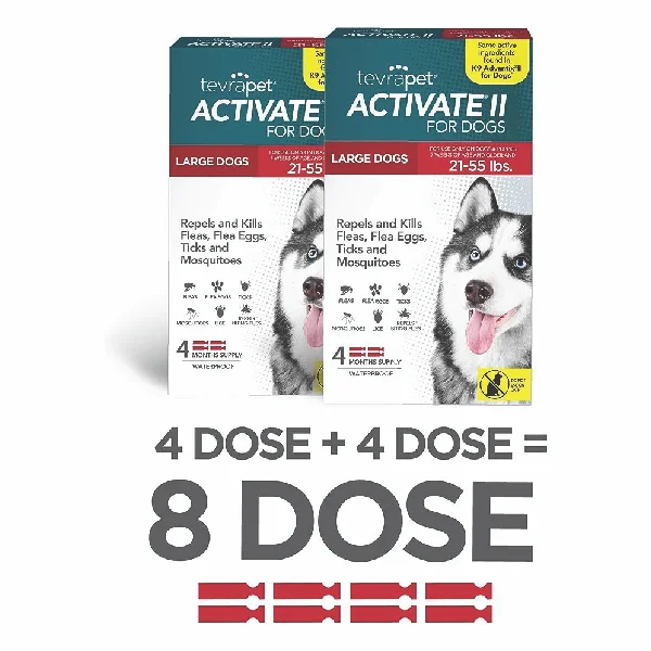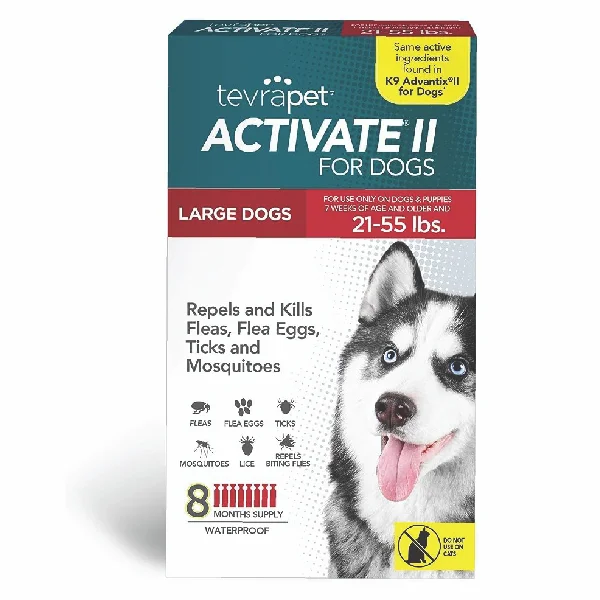 TevraPet Activate II Flea and Tick Prevention for Dogs | Large Dogs 21-55 lbs | Fast Acting Flea Drops | 8 Month Supply | Vet Quality Protection