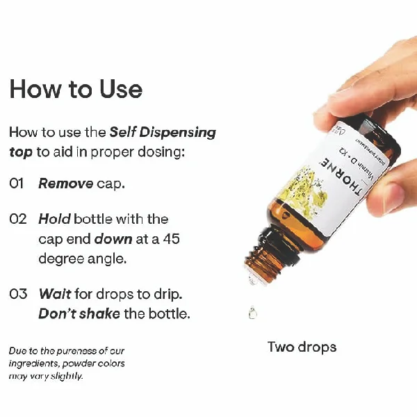 Self-Dispensing Top: To provide accurate and individualized dosing, the bottle includes a self-dispensing top that meters individual drops. Because safety is a Thorne priority, you might experience a delay between drops